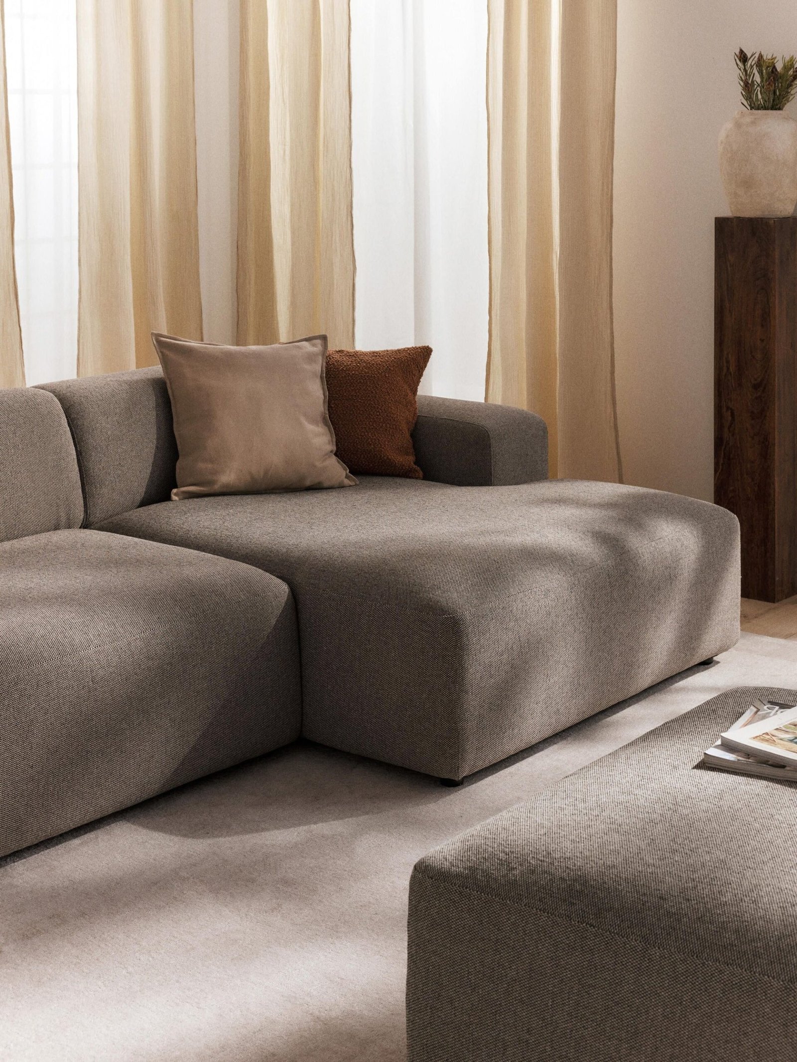 Un sofá que “combina con todo” no es necesariamente el más llamativo, sino el que se adapta a diferentes estilos, estaciones y cambios de decoración. Si eliges un tono neutro o atemporal, siempre podrás renovarlo con accesorios y lograr un espacio que evolucione contigo.